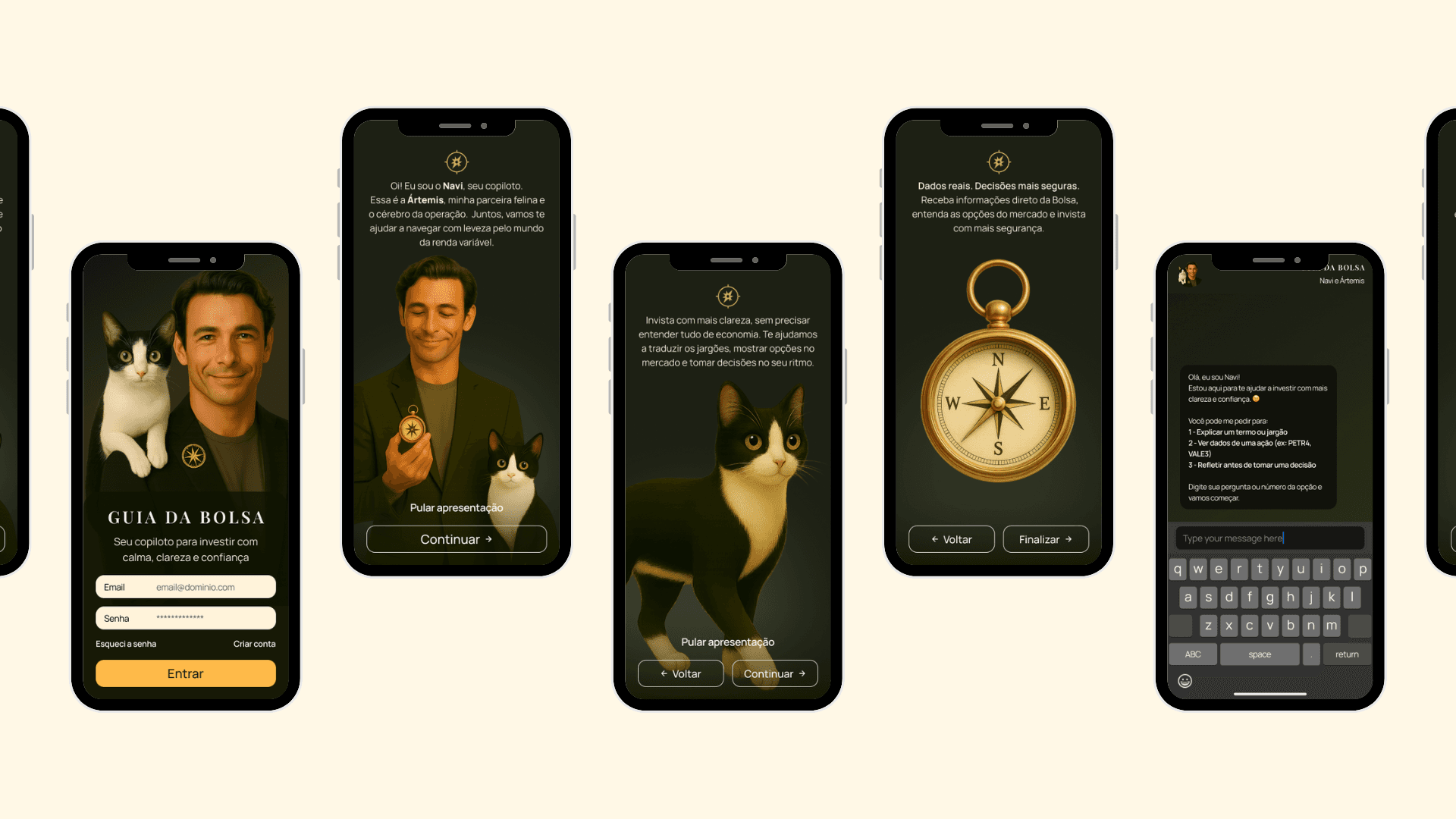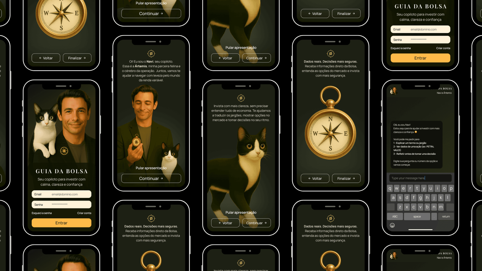 The visual identity was designed from scratch to create a calm, intelligent, and emotionally safe space — far from the cold interfaces common in financial products.