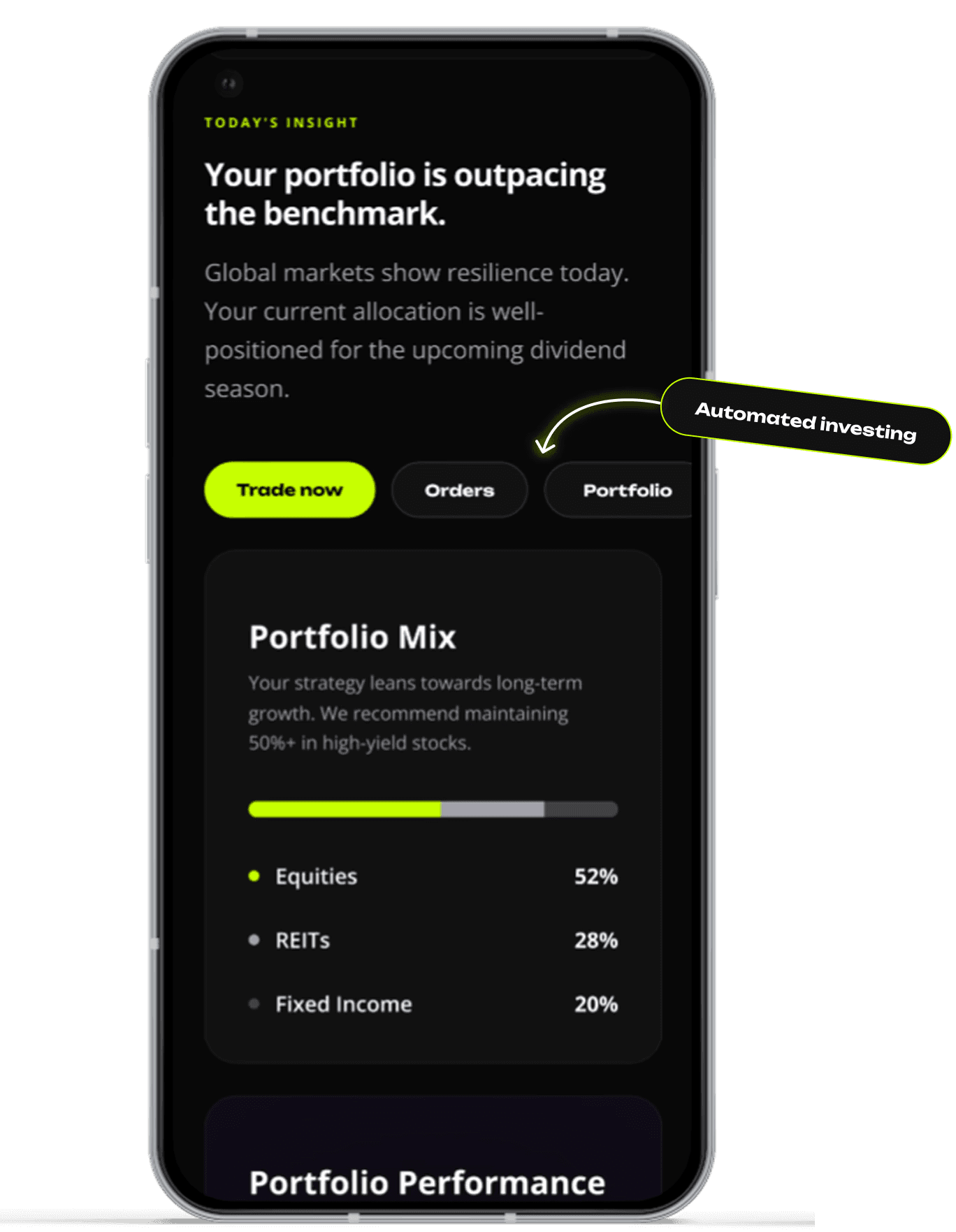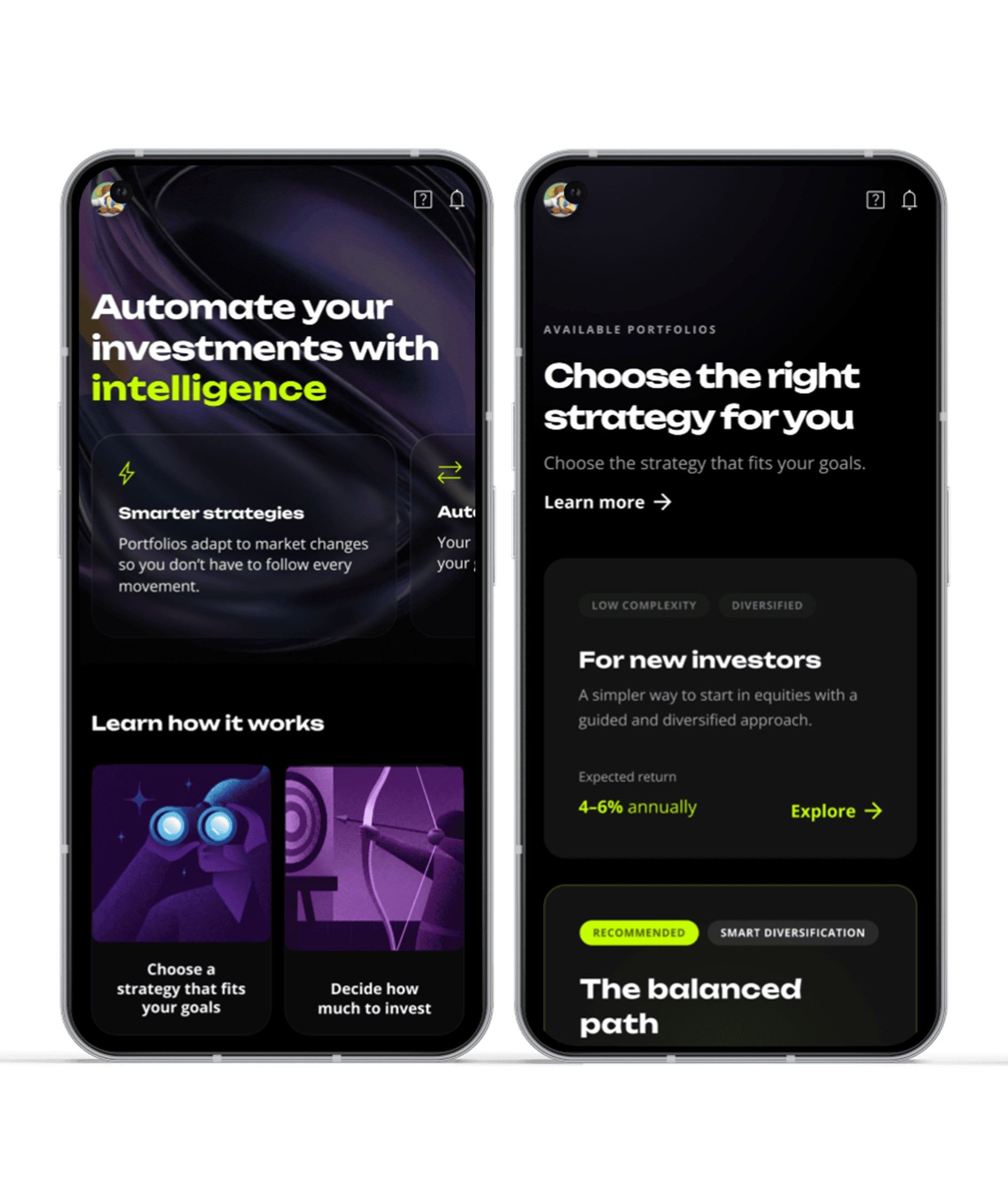 Through negotiation with the Showcase squad I designed a contextual card within the stock recommendation flow: not a competing product, but a natural next step. "You're already interested in these stocks, here's a way to invest in them automatically, managed by specialists."